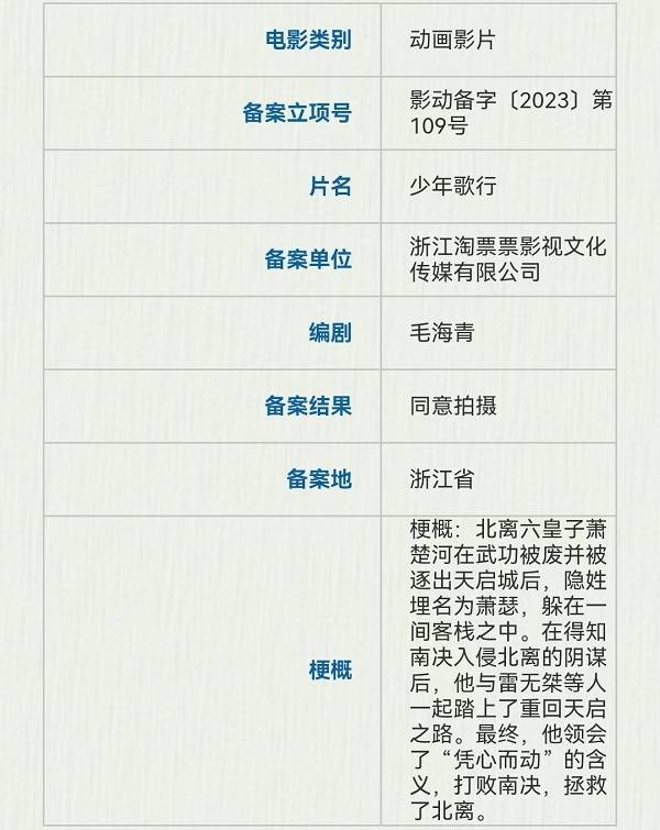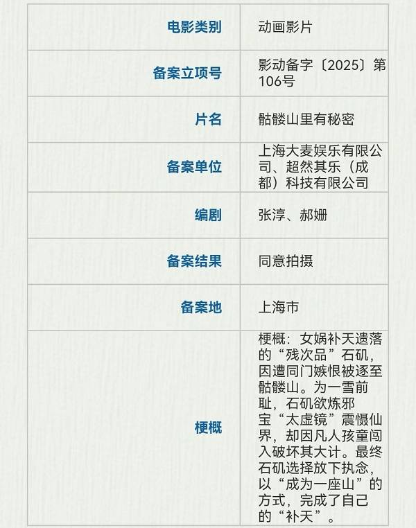 大麦娱乐(原东阳阿里巴巴影业)和其旗下的淘票票备案了两部动画电影《骷髅山里有秘密》《少年歌行》。