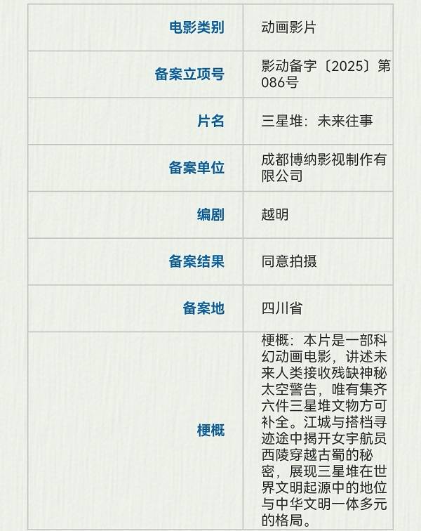 《三星堆:未来往事》是一部和三星堆文物有关的科幻动画电影,用博纳投资搭建的AI生产线创作,目前处于制作收尾阶段。