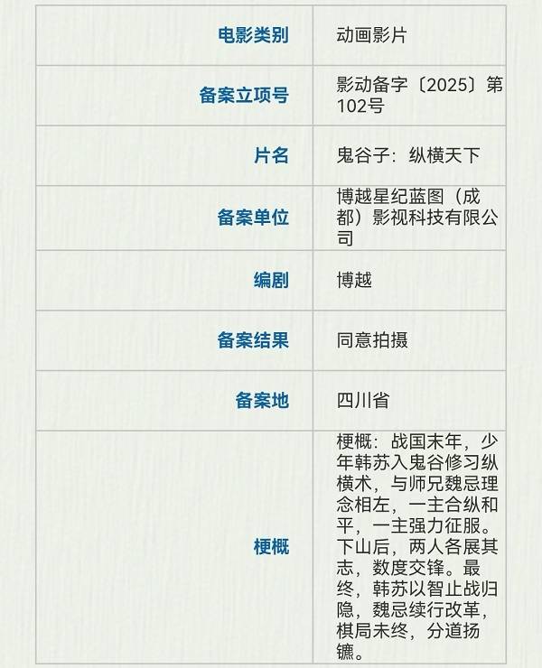 博纳影业备案了动画电影《人体大战》《三星堆:未来往事》《鬼谷子:纵横天下》。