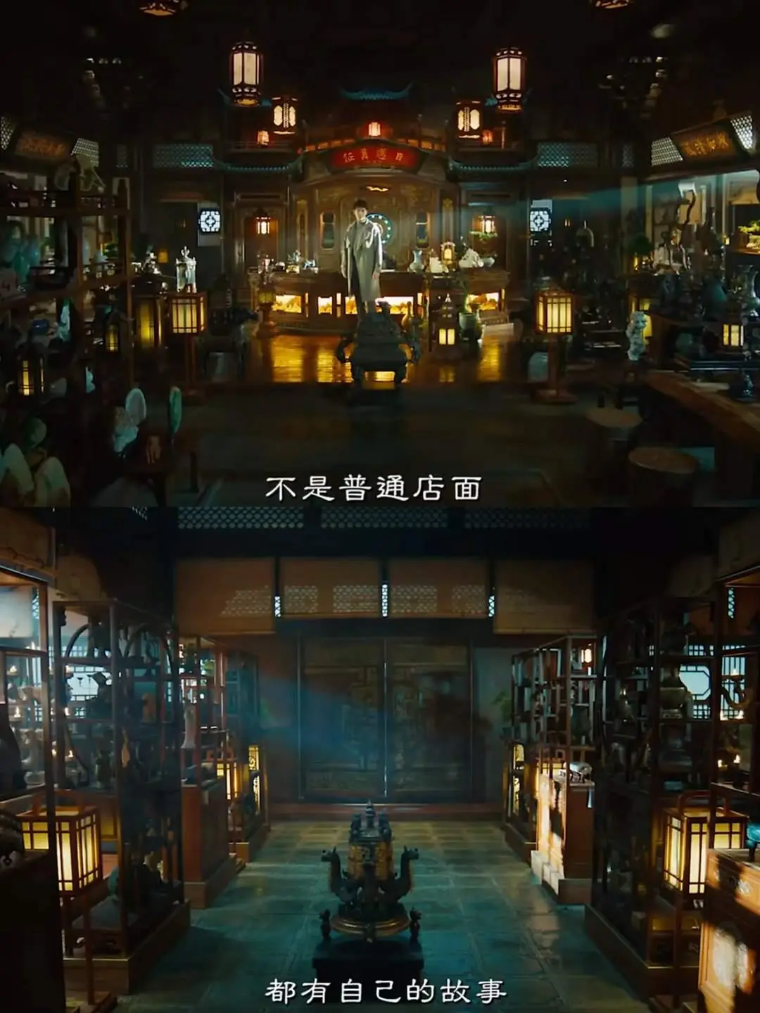 制作层面堪称“细节狂魔”,剧组为还原不同朝代风貌,1:1实景搭建秦朝宫殿、民国街景,哑舍店内的鱼纹镜、留青梳、锟铻刀等古物,连纹路都复刻原著细节。